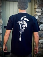 PRINTED ON THE TRIED AND TRUE COMFORT COLORS 1717. THE IMP WITH SWORD DESIGN FEATURES AN EMBROIDERED FRONT LOGO AND SCREEN PRINTED BACK DESIGN.